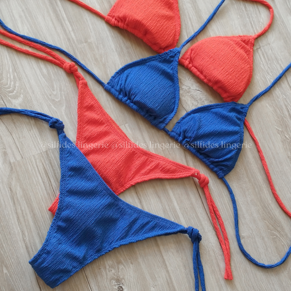 Bikini triangulito clásica, texturada. Incluye tacitas desmontables.