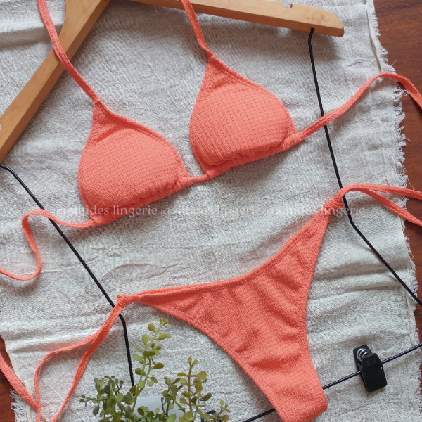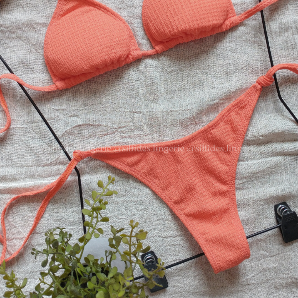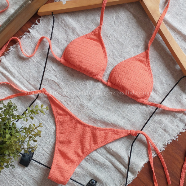 Bikini triangulito clásica, texturada. Incluye tacitas desmontables.