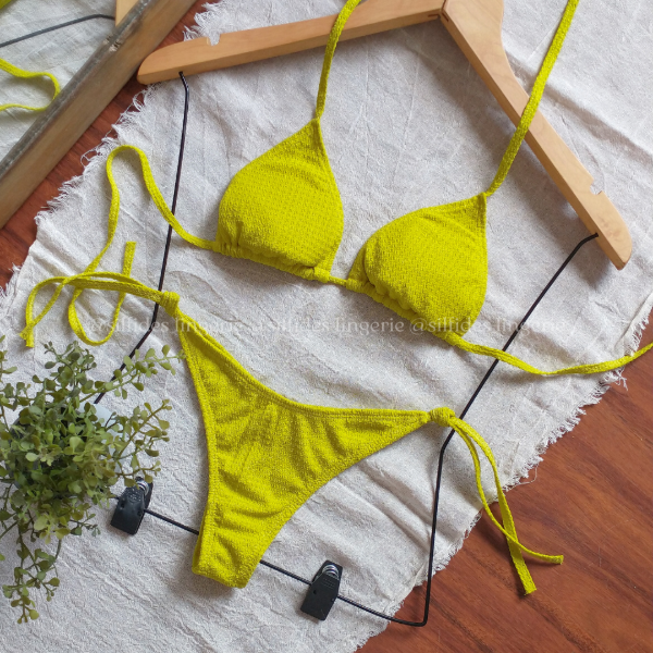 Bikini triangulito clásica, texturada. Incluye tacitas desmontables.