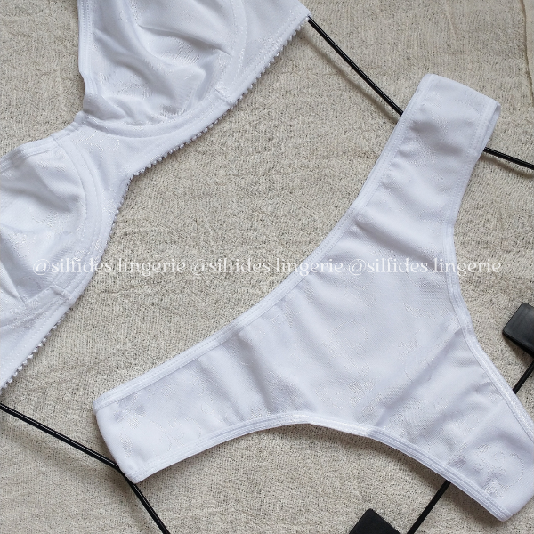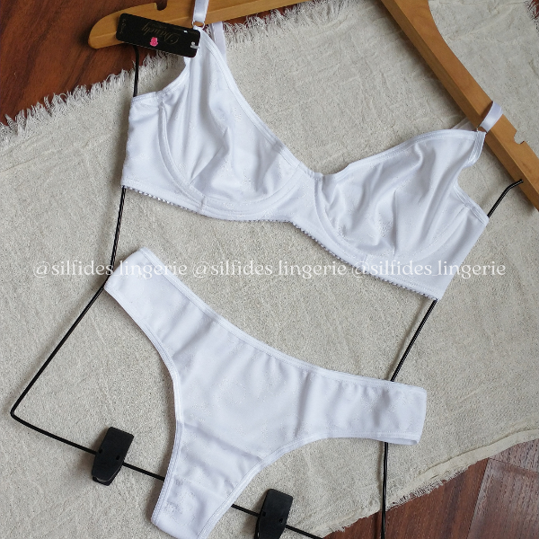 Conjunto con aro, confeccionado en algodón labrado. Bombi colaless.