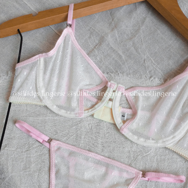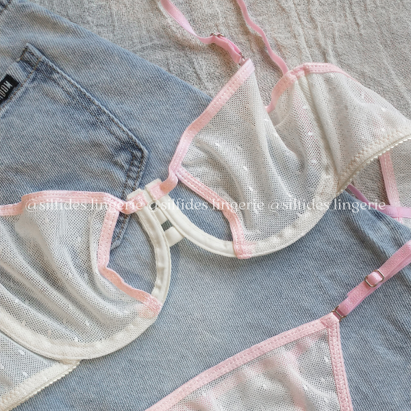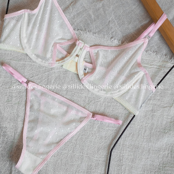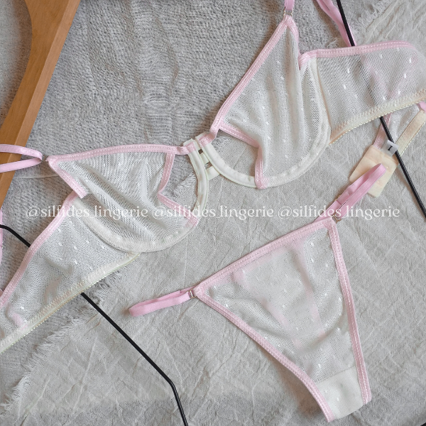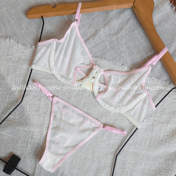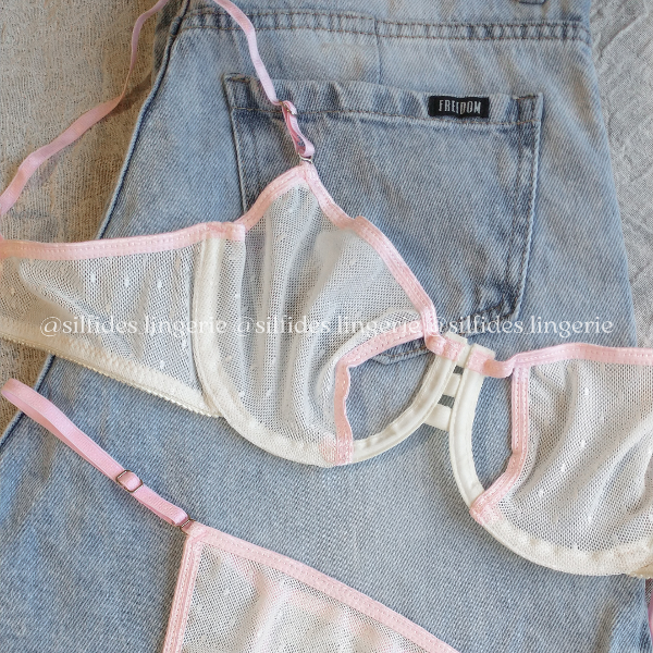 Conjunto confeccionado en microtul plumetí. Corpiño con aro y con aberturas. Less regulable.