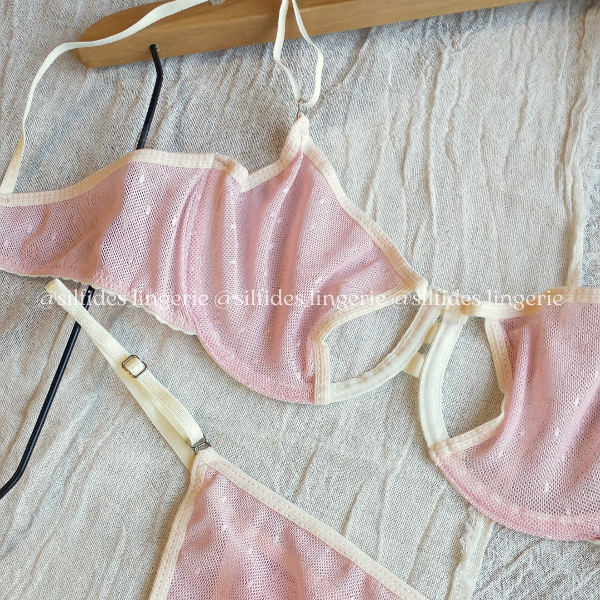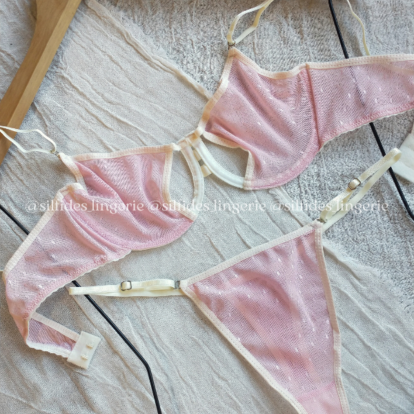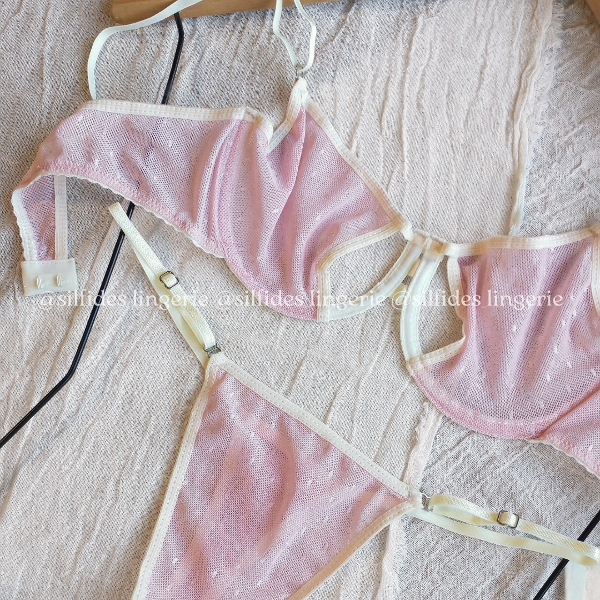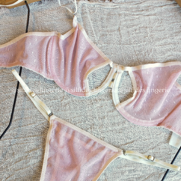 Conjunto confeccionado en microtul plumetí. Corpiño con aro y con aberturas. Less regulable.