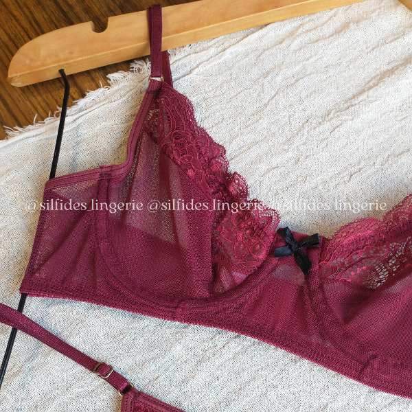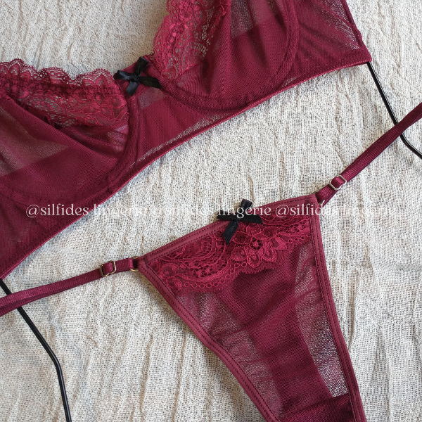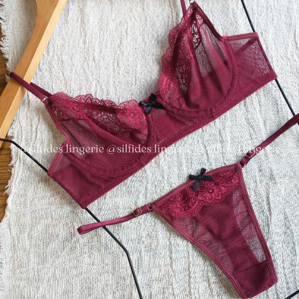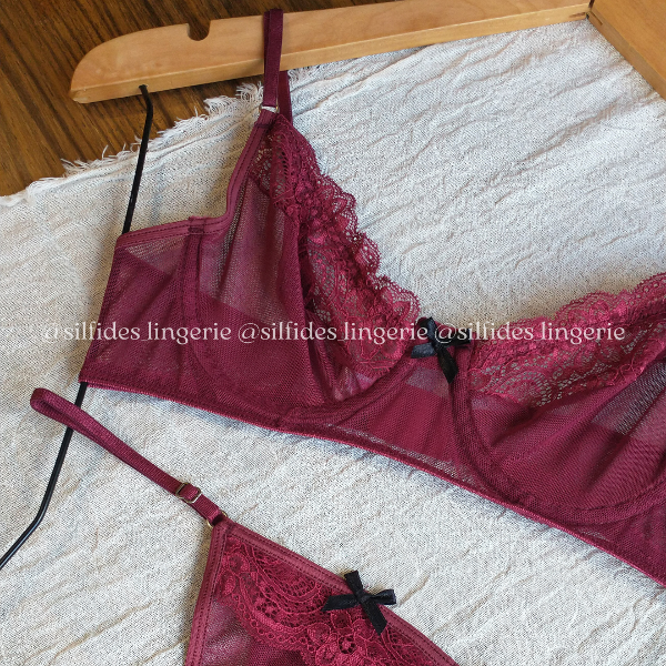 Conjunto de microtul con detalles en puntilla. Corpiño con aro, less regulable.