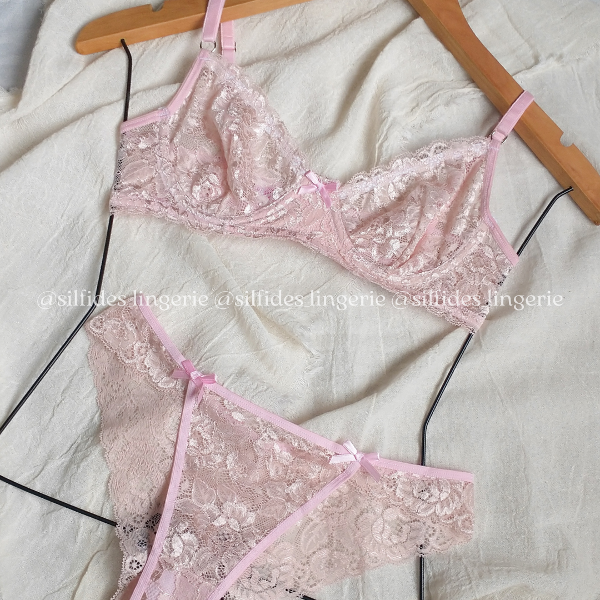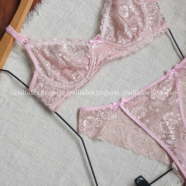 Conjunto con aro, confeccionado en puntilla. Bombi vedetina.