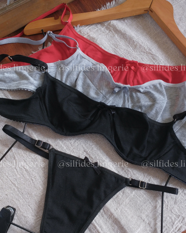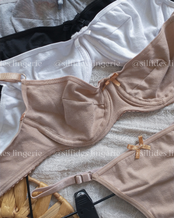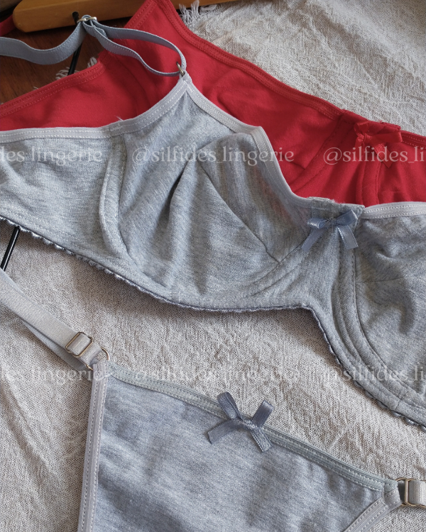 Conjunto con aro, confeccionado en algodón con lycra. Corpiño en moldería balconette.