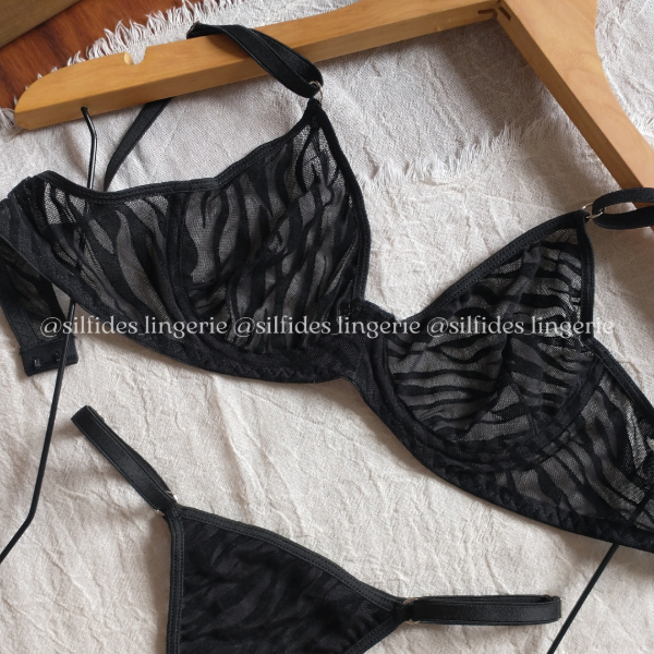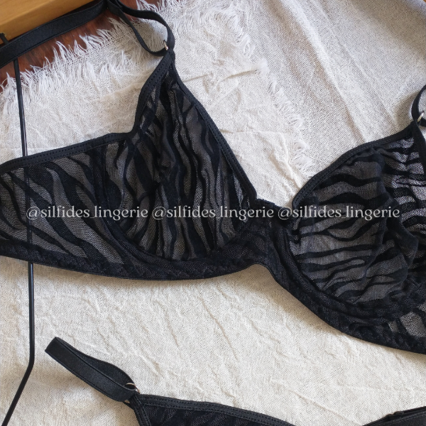 Conjunto con aro, confeccionado en microtul bordado terciopelo. Bombi less regulable.