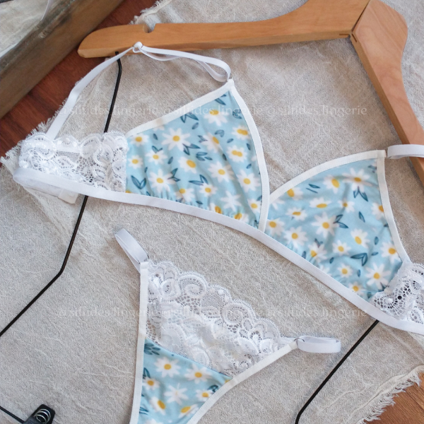 Conjunto bralette confeccionado en microfibra con viscosa, combinado con detalles en puntilla. Bombi regulable.