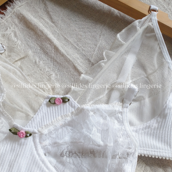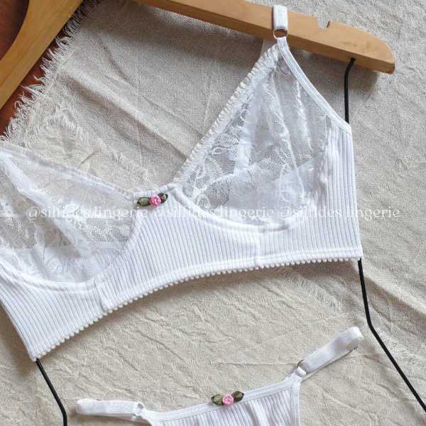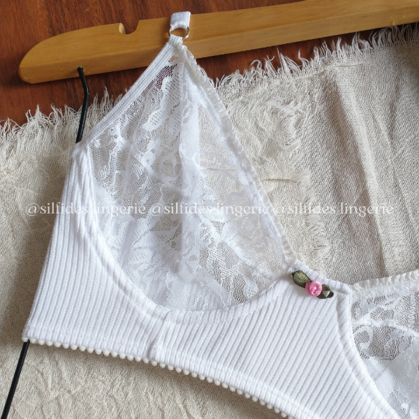 Conjunto con falso aro. Confeccionado en morley combinado con encaje.