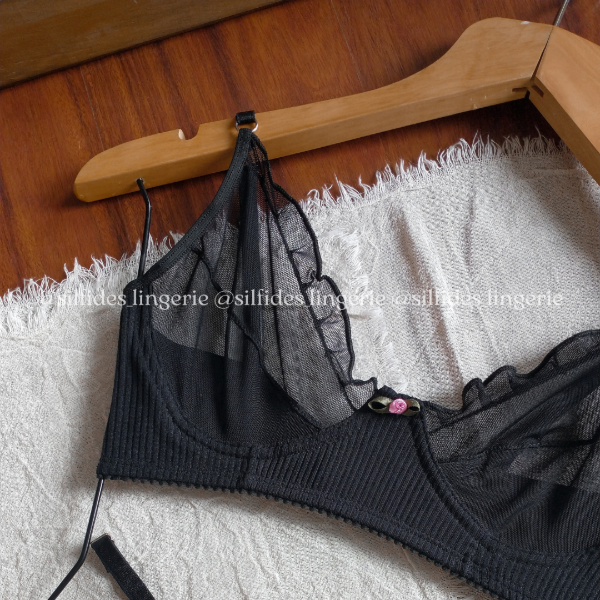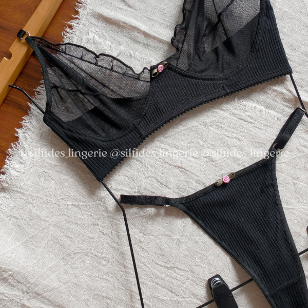 Conjunto con falso aro. Confeccionado en morley combinado con tul.