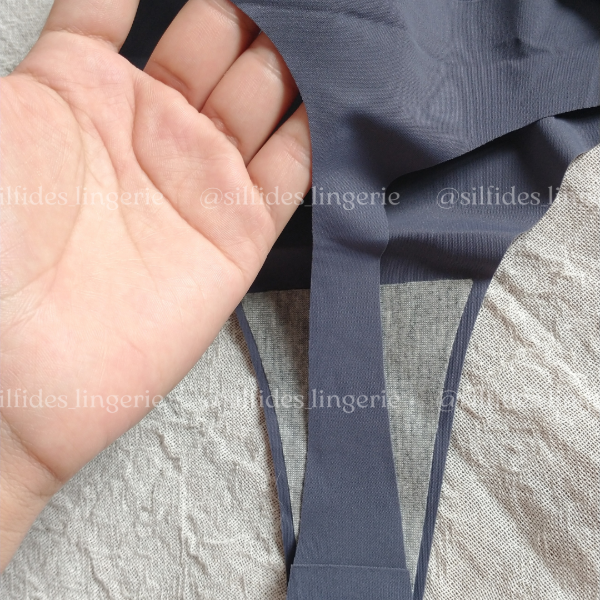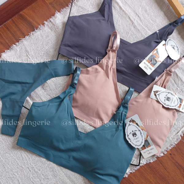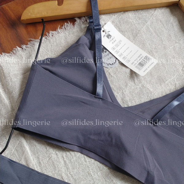 Corpiño con breteles regulables y avíos de plástico (ideal si sos alérgica al metal), tazas desmontables. Bombi colaless con refuerzo de algodón en la zona íntima.