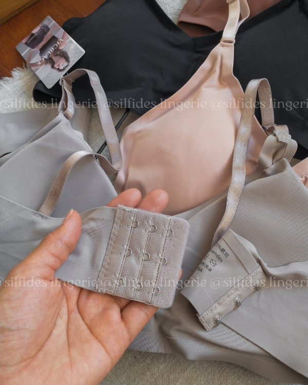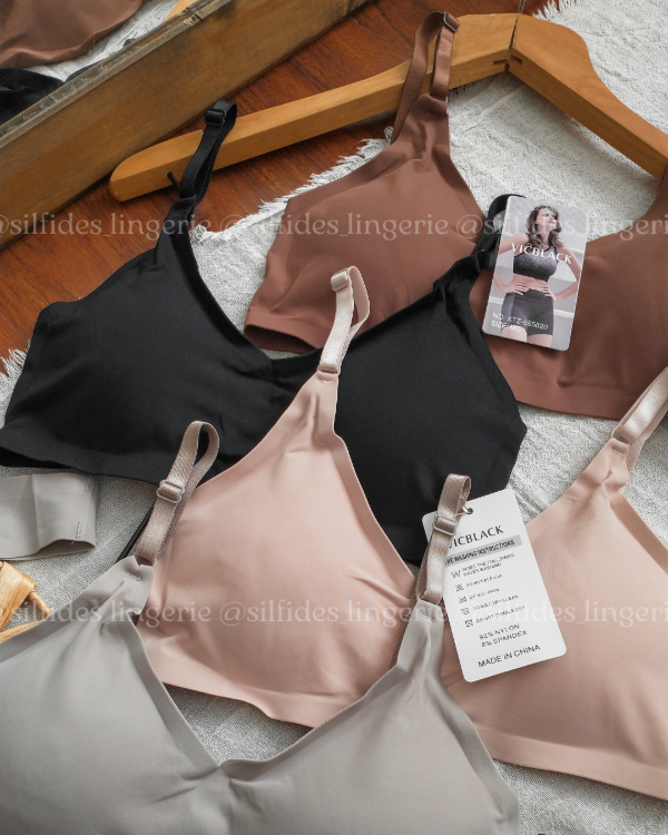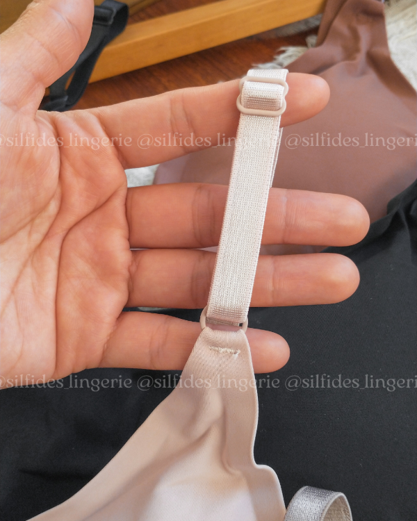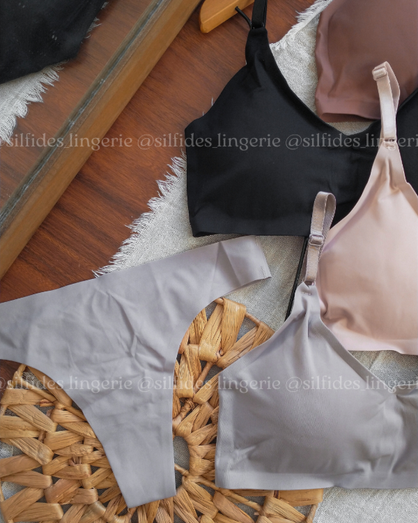 Corpiño con breteles regulables y avíos de plástico (ideal si sos alérgica al metal), tazas desmontables, se abrocha en la espalda. Bombi colaless con refuerzo de algodón en la zona íntima.