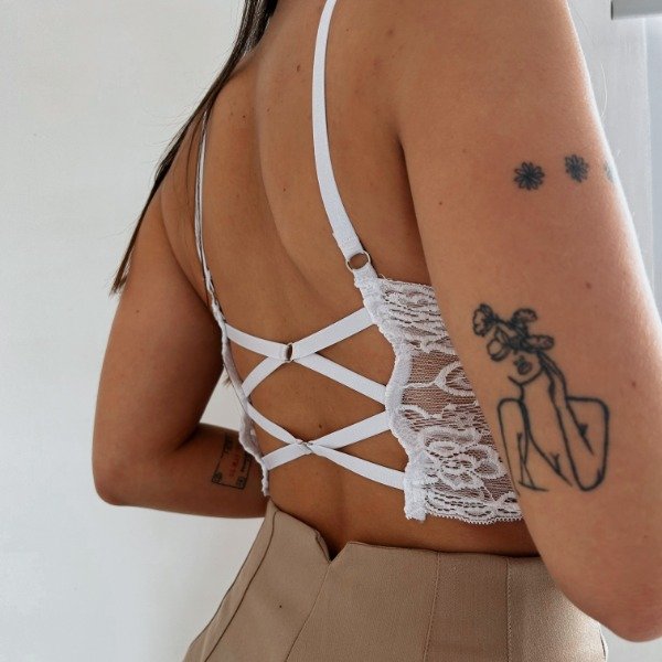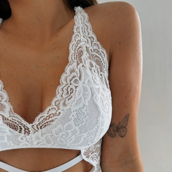 Bralette confeccionado en encaje. Tazas forradas. NO VIENE CON BOMBI.