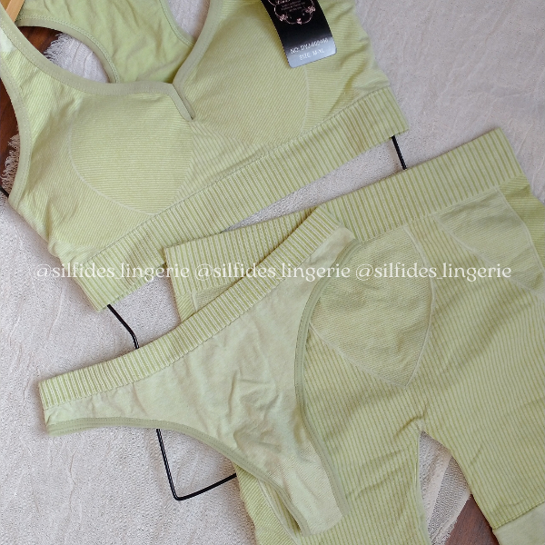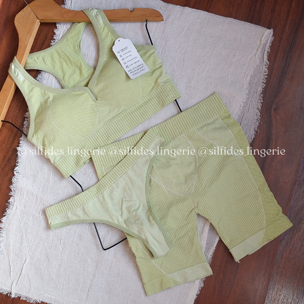 Set deportivo importado de 3 piezas: incluye top con tazas desmontables, biker con efecto push up (SIN FRUNCE) y bombi less tiro alto.