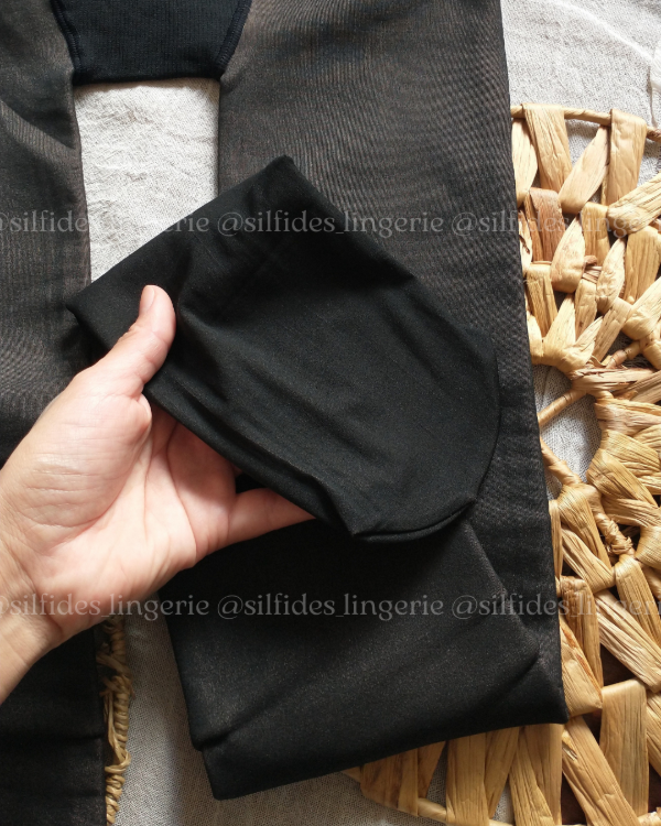 Medias térmicas efecto piel, importadas, con faja compresora en el abdomen y push up en la cola (foto 4). Interior forrado de peluchito, excepto en los pies.