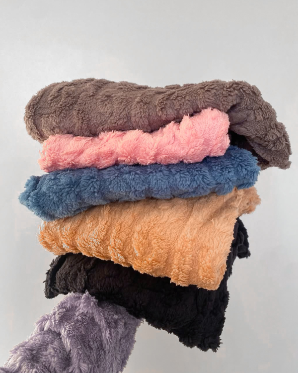 Confeccionados en peluche bifaz (textil con ligera elasticidad).