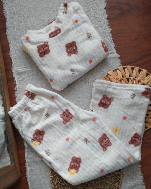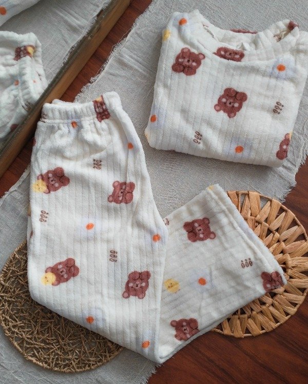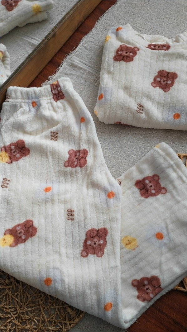 Pijama 2 piezas importado, de plush liviano acanalado. Confección ancha, pant y buzito SIN puños. TALLE ÚNICO.