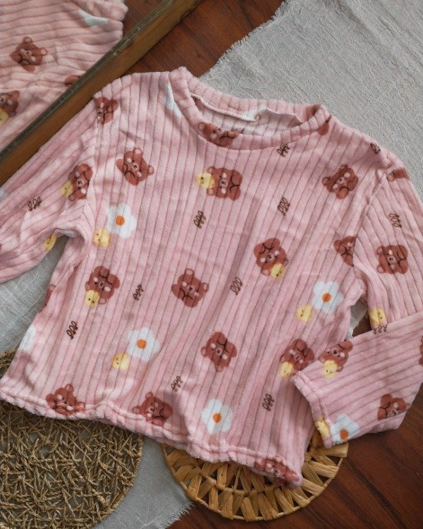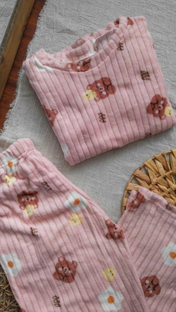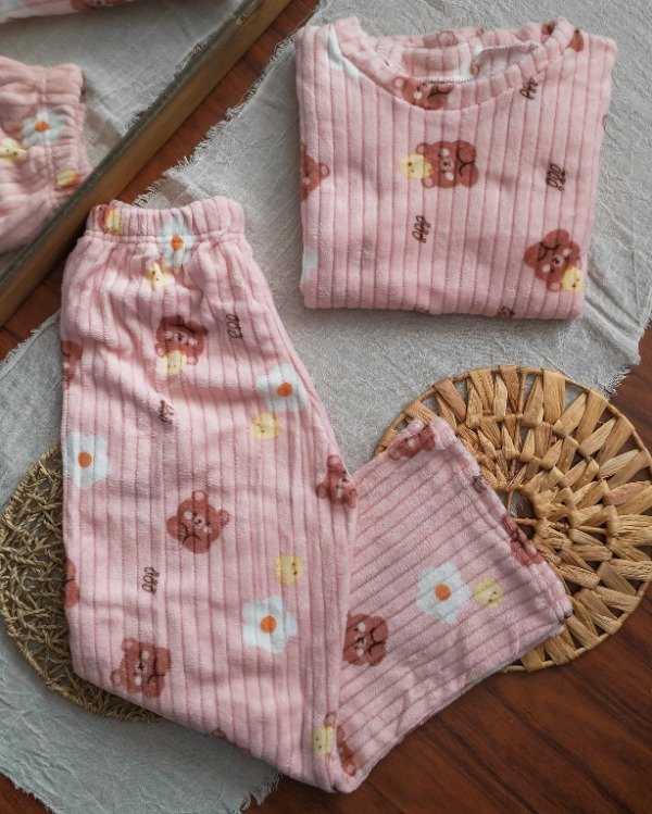 Pijama 2 piezas importado, de plush liviano acanalado. Confección ancha, pant y buzito SIN puños. TALLE ÚNICO.