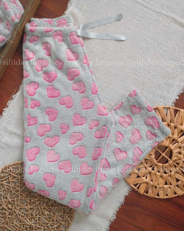 Pijama polar soft luminoso - corazones